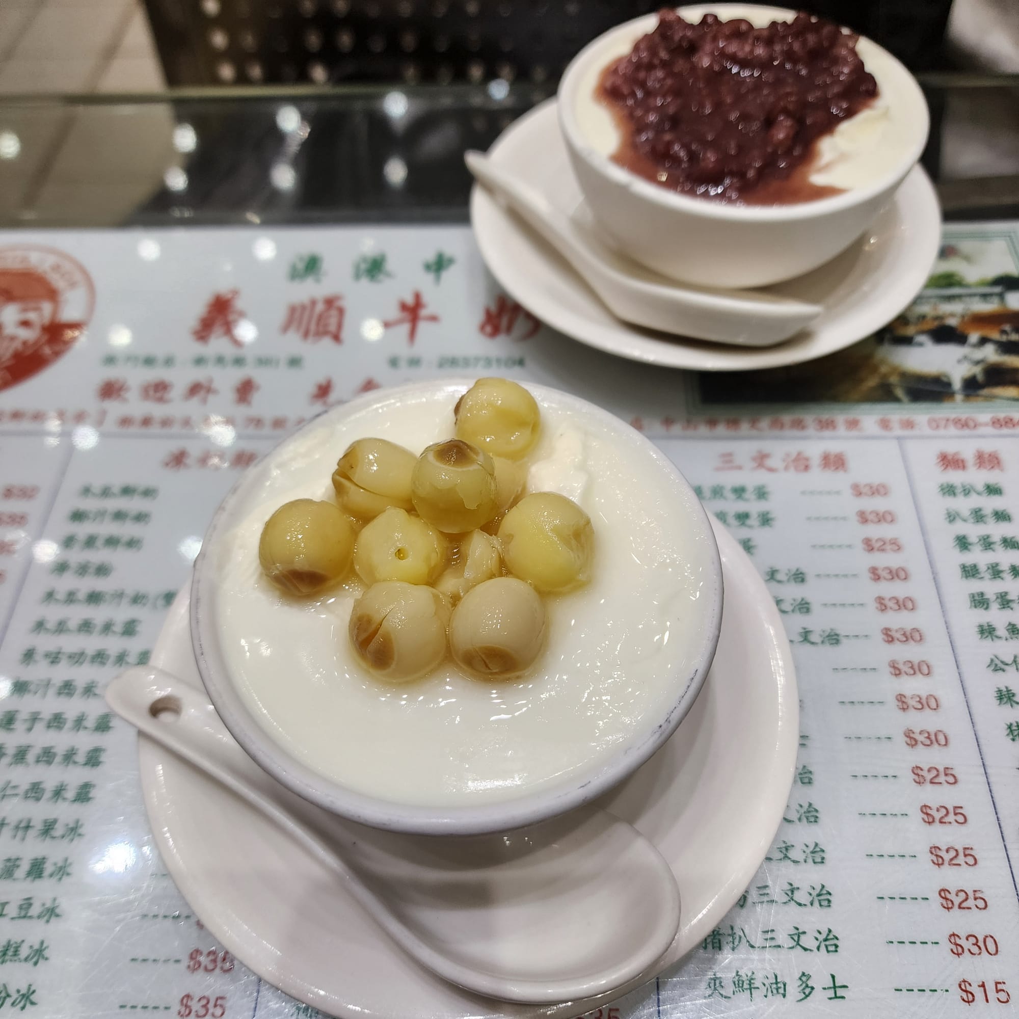 하씨는 팥, 나는 연꽃씨앗이 추가된 차가운 우유푸딩을 시켰다.
