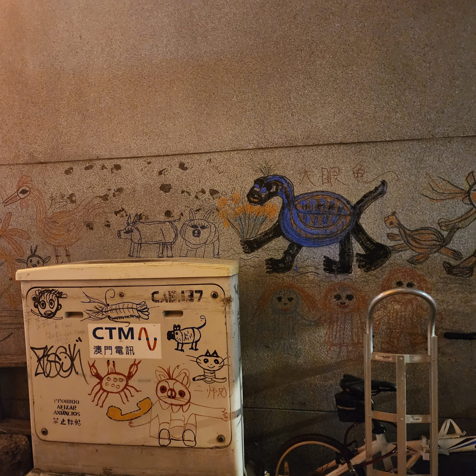 새로운 경험 그 자체. 기다리다 답답해서 계단으로 가면, 모서리마다 각종 자국과 낙서?가 있었다.