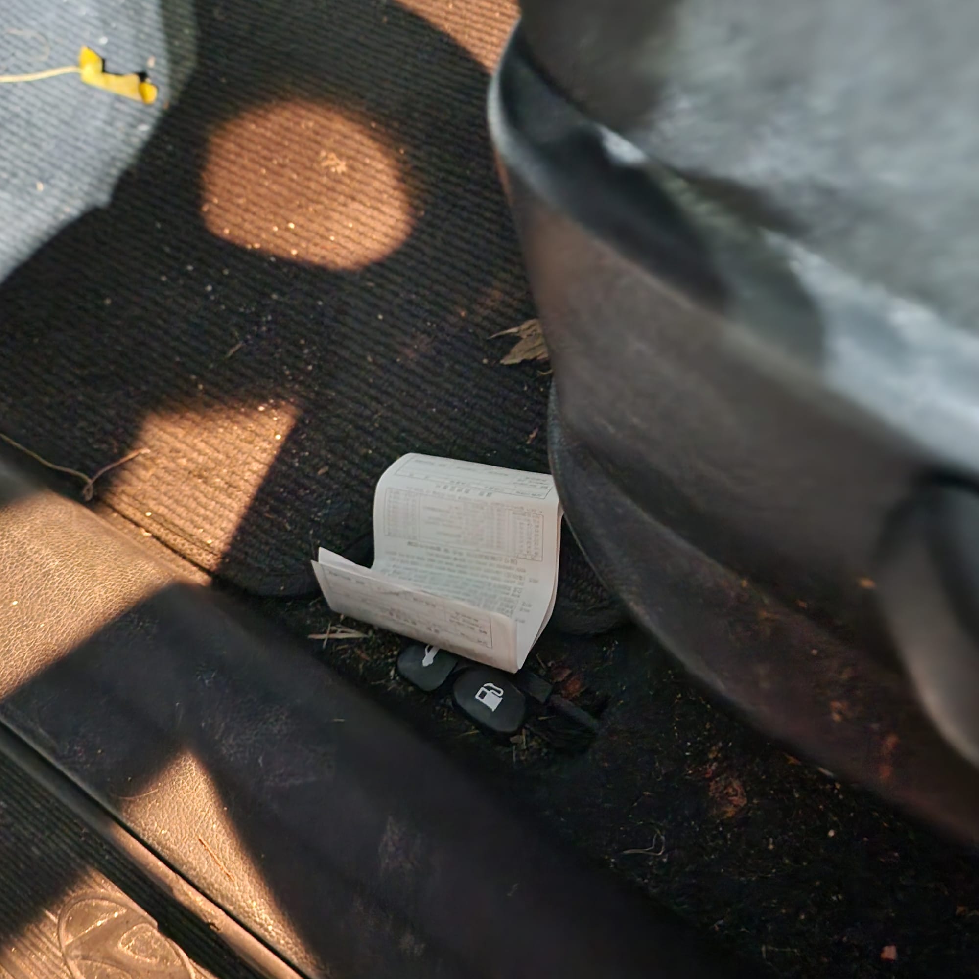 운전석 도어 트림에 넣어두었던 영수증이 운전하는 동안 떨어져 나와서 다리를 스친 듯 했다.