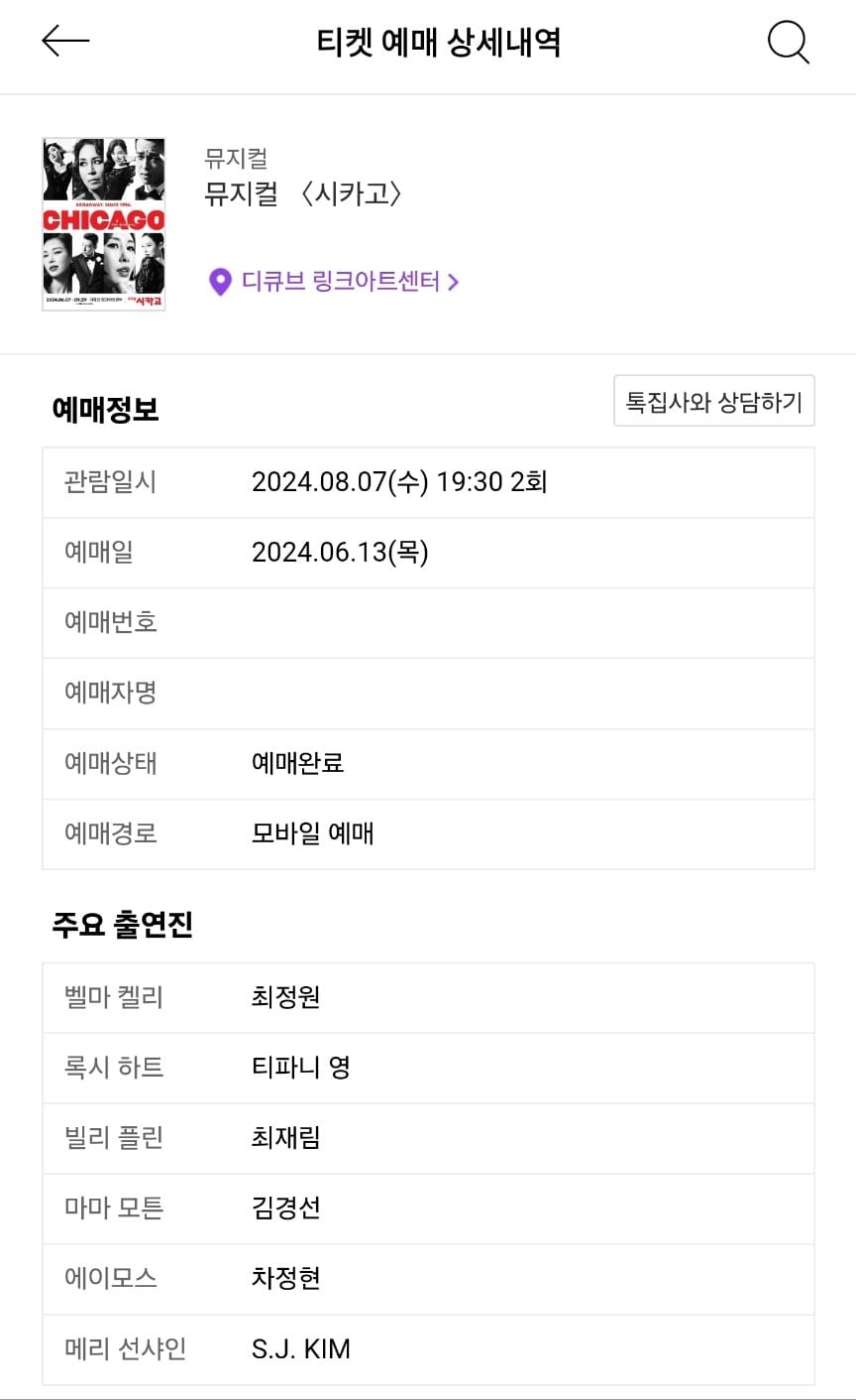 나는 인터파크 티켓을 통해 예약을 찾아보았다.