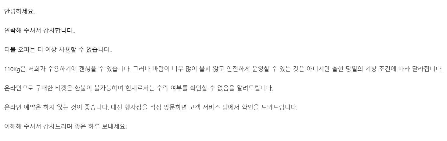 비행기 탑승하자마자 승무원분께 말해봤는데, 그건 안된다는 말을 들었다,, 뭐지,,?