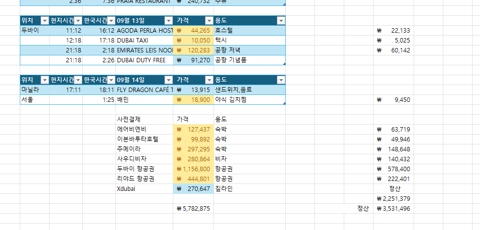 전씨와 잡담하던 중, 중동 여행 공제 하래서 말 나온김에 1시간 정도 열심히 공제 계산했다.