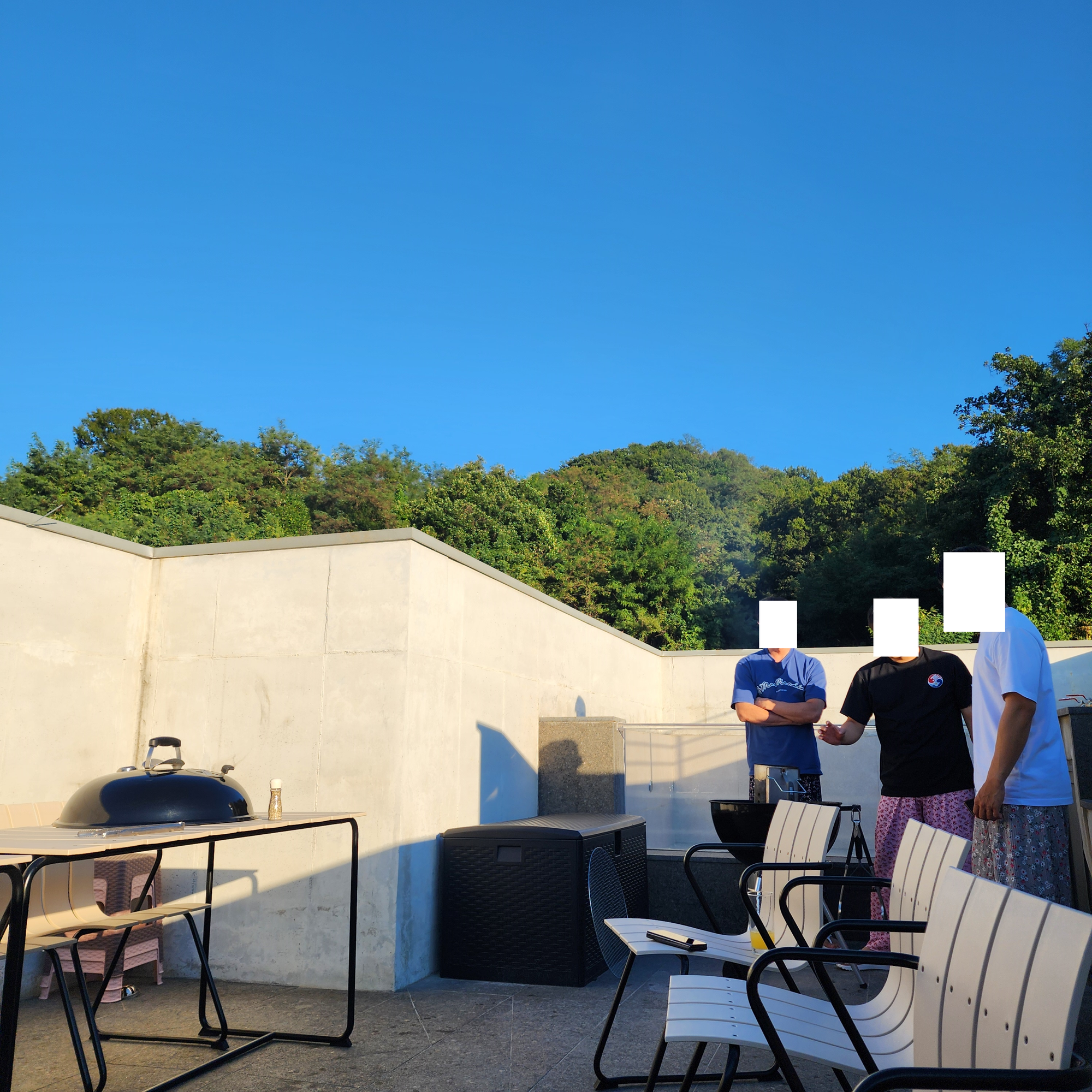 복층 베란다에 있는 바베큐장에서 고기를 먹는데,