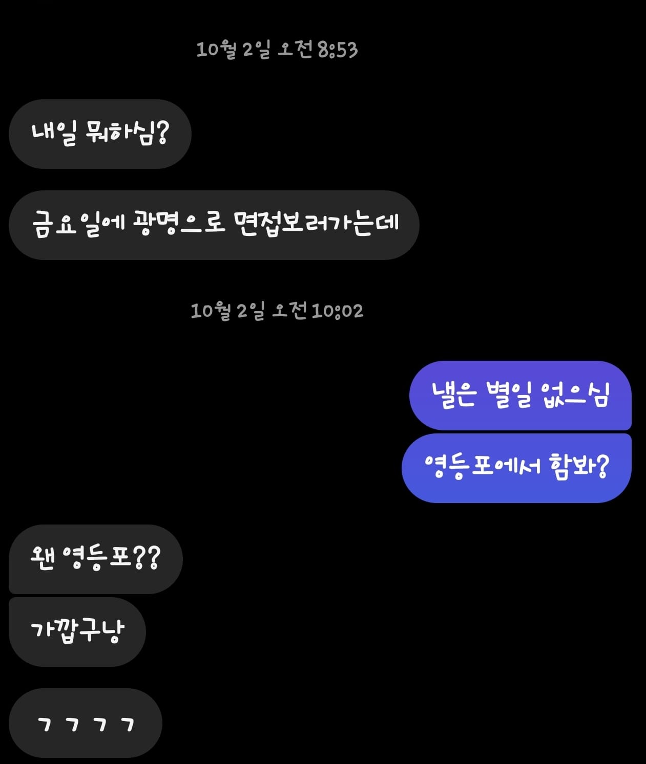 이상하게 맨날 청주에 있던 전씨가 서울 와서 놀자고 하더라.
